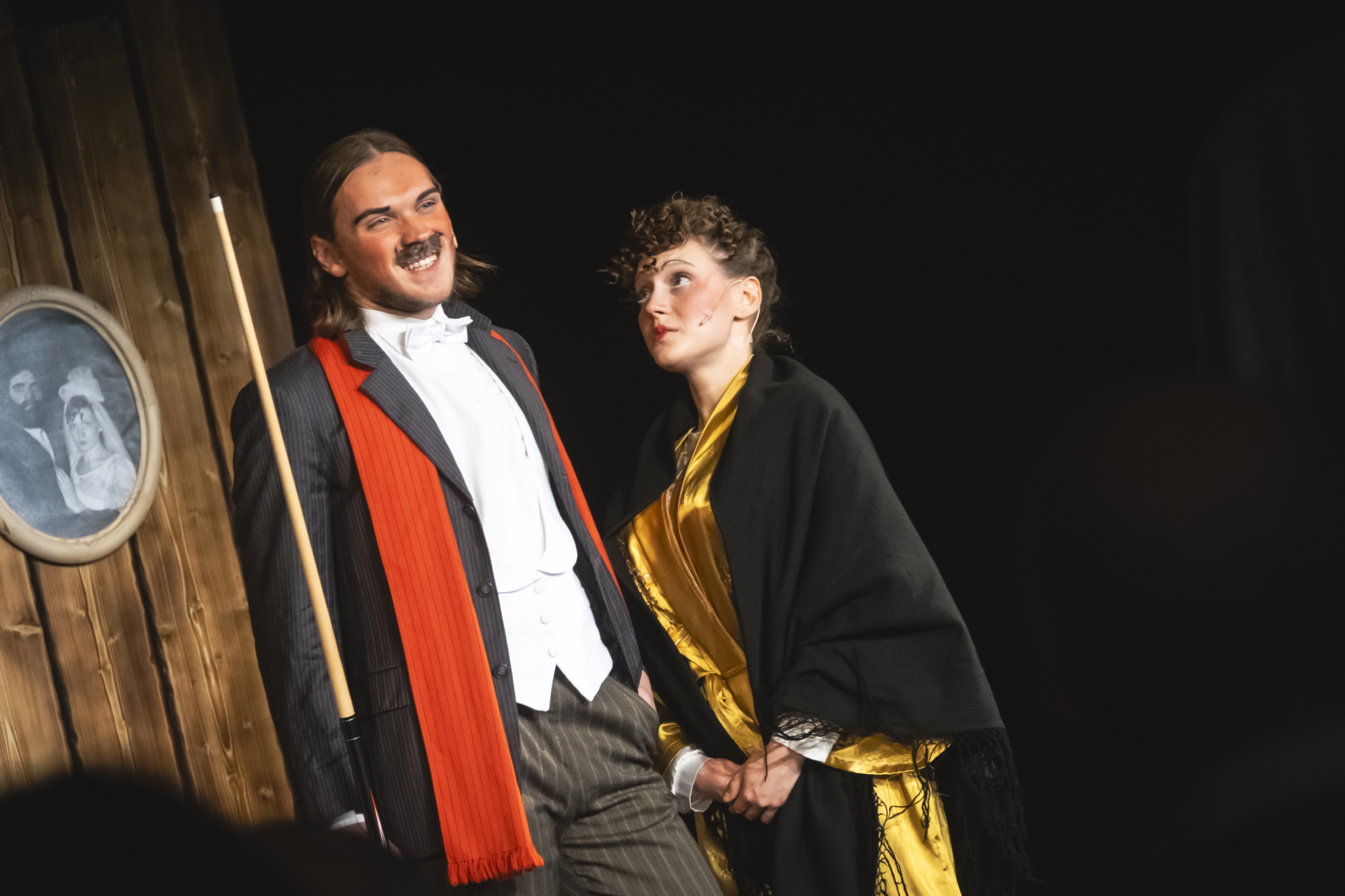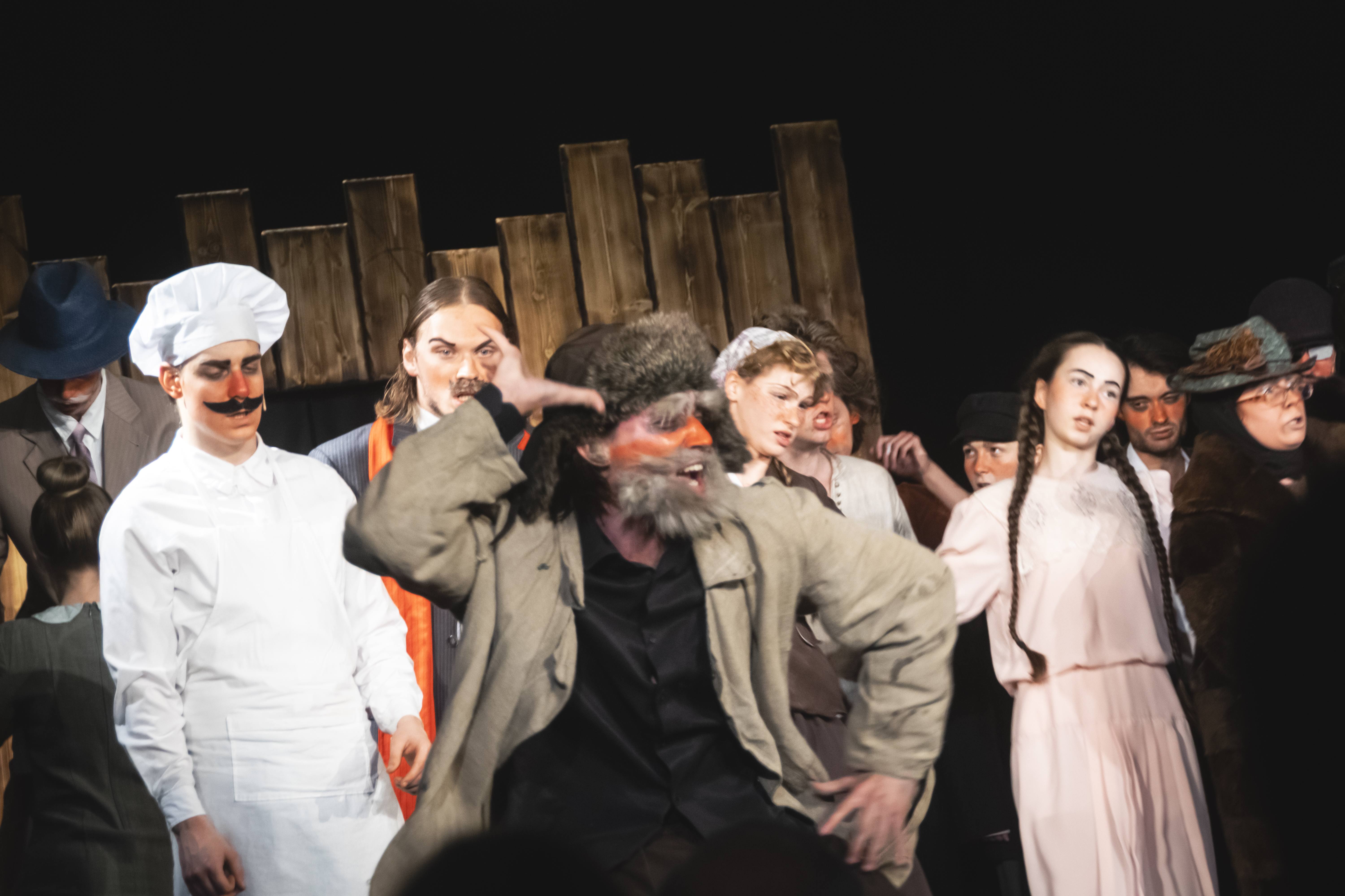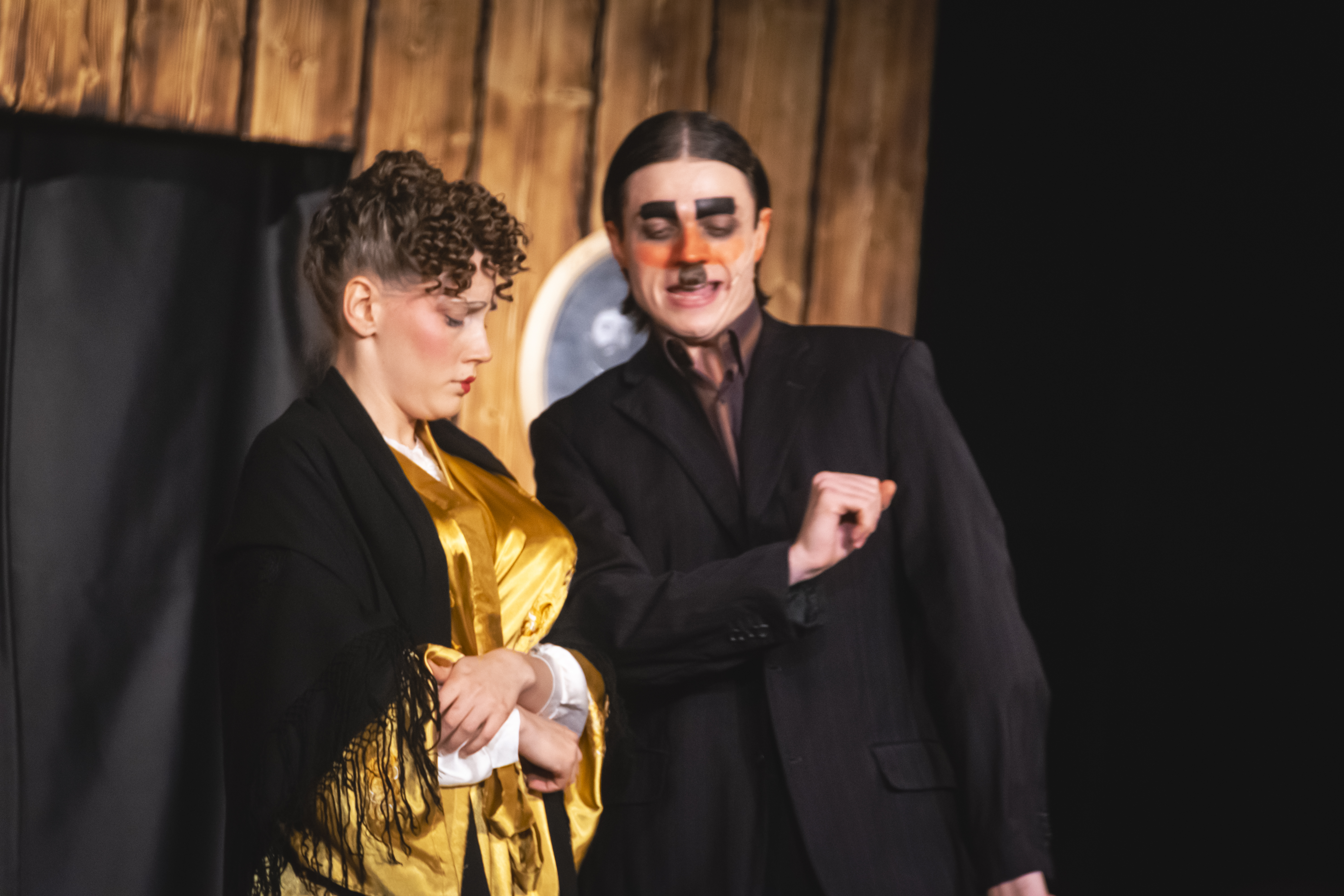 На суд зрителя будет представлена интригующая история похорон переходящих в свадьбу и совершенно неожиданный финал .Это яркое гротескное действо вкупе с блестящей музыкой Исаака Дунаевского будет азартно сыграно, спето и отплясано студентами ВГИКа под звуки настоящего оркестрика.